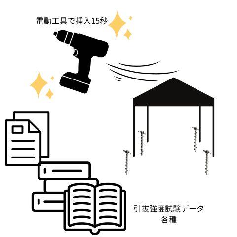 らせん構造で地中にねじ込み固定 |